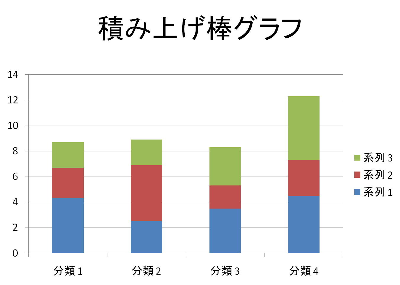 棒グラフに内訳を加えたのが「積み上げ棒グラフ」です。