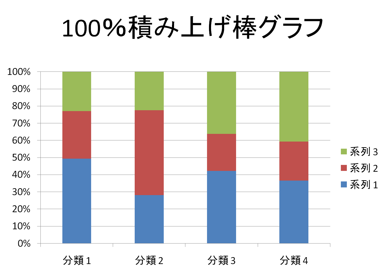 「100%積み上げ棒グラフ」は積み上げ棒グラフと異なり、