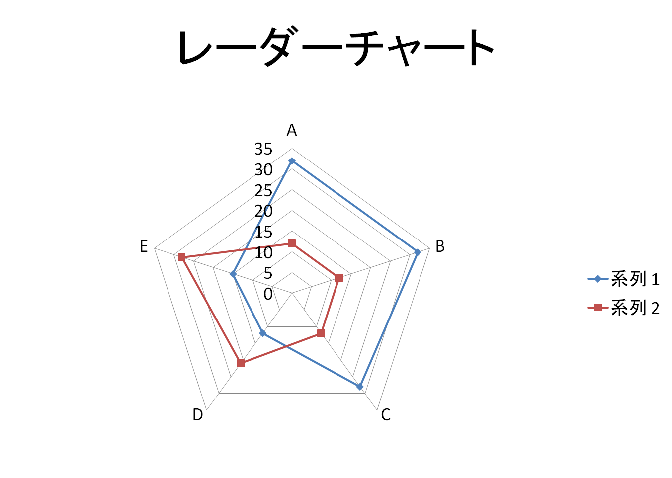 5〜6個のデータを用いて特性評価をしたい時は「レーダーチャート」を用います。