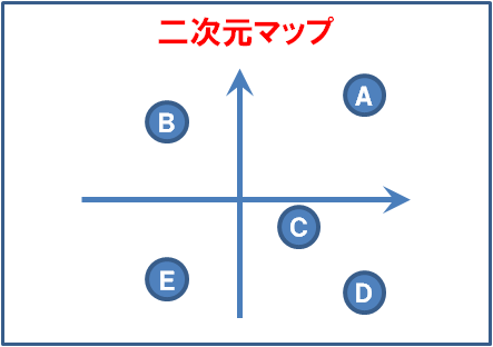 「二次元マップ」や「四象限マトリクス」を用いることとなります。