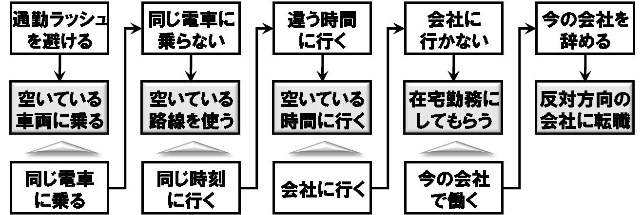 「通勤ラッシュを避ける」方法を発想しています。